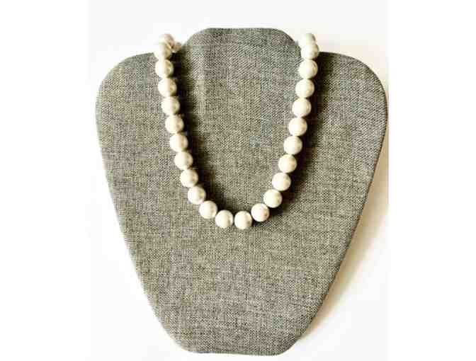 Complete your outfit with a Swarovski crystal grey pearl necklace. Measured at approximately 18 1/2 inches in length this necklace has Swarovski light grey 12 mm crystal pearls.
