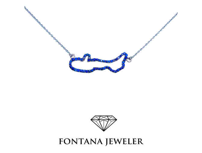 The Large Geneva Lake outline with .87 total carat weight of sapphire and 18" in length with two shortening adjustable rings in Sterling Silver.