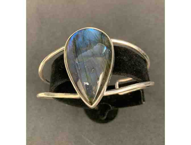 Masterfully designed, this beautifully artisan-crafted designer cuff bracelet boasts richly detailed a high quality labradorite gemstone at center. These adjustable cuff to promote creativity and facilitate new beginnings are simply stunning.
