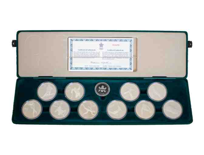 1 set of a 1988 Calgary Olympics, $20 silver coin set in its original velvet case, with a certificate of authenticity by the Royal Canadian Mint.