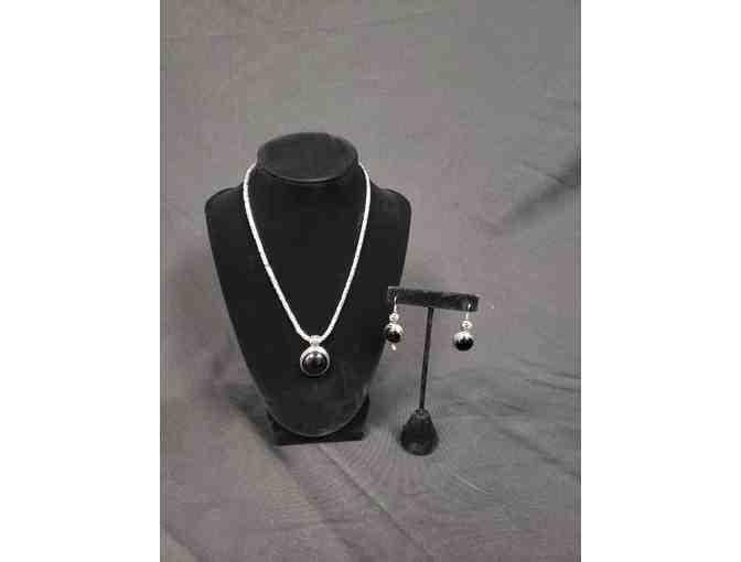 Sterling Silver Black Onyx Pendant w/Matching Earrings