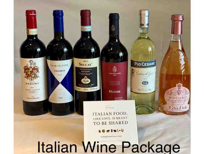 6 lovely bottles of Italian wines and a $50 Eataly gift card. Wines to include: