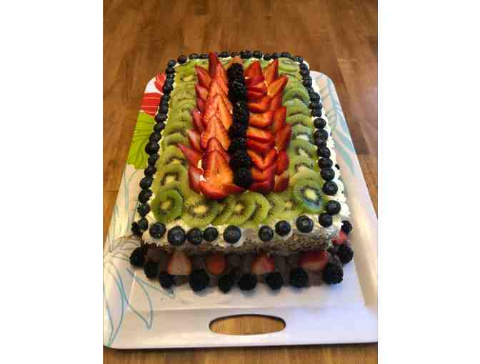 This delicious special treat is made from layer cake, whip cream, walnuts, fruit and is made with love.