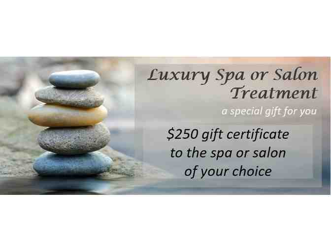The highest bidder will receive a $250 gift certificate to spa or salon of your choice.