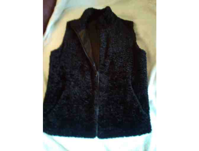 Ladies black vest I sent you. Completely lined. Zip front, Made from short-looped yarn. Size small. Hits at the top of the hip. Like new.