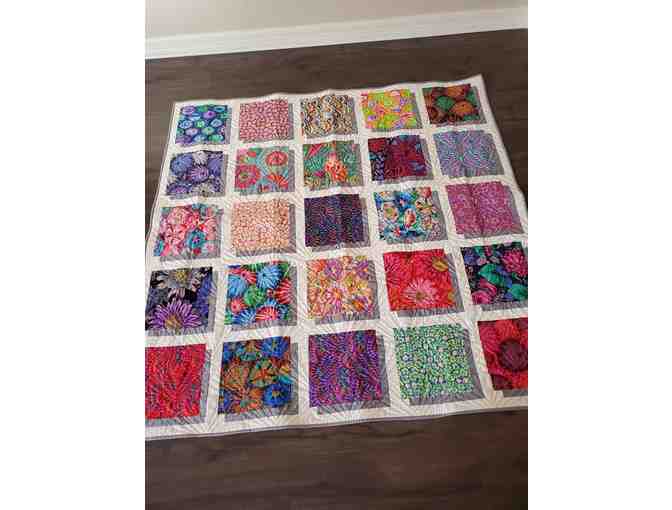 It's just an illusion. Pieced and quilted by Nancy Johnson. Sometimes you don't need to cut up the fabric in little pieces. This quilt gives a 3D illusion and lets the beauty of the fabric take center stage.