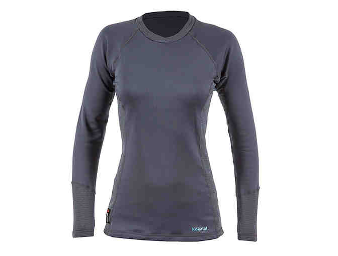 The Kokatat Power Dry Outer Core Long Sleeve Top for Women has a super soft velour backing. This shirt's color is nearly black, described as coal. It provides great warmth on it's own, and it's smooth face fabric also makes it great piece for layering. This 4-way stretch shirt fits great, wicks moisture, and provides great warmth making it the perfect shirt for cold weather paddling.