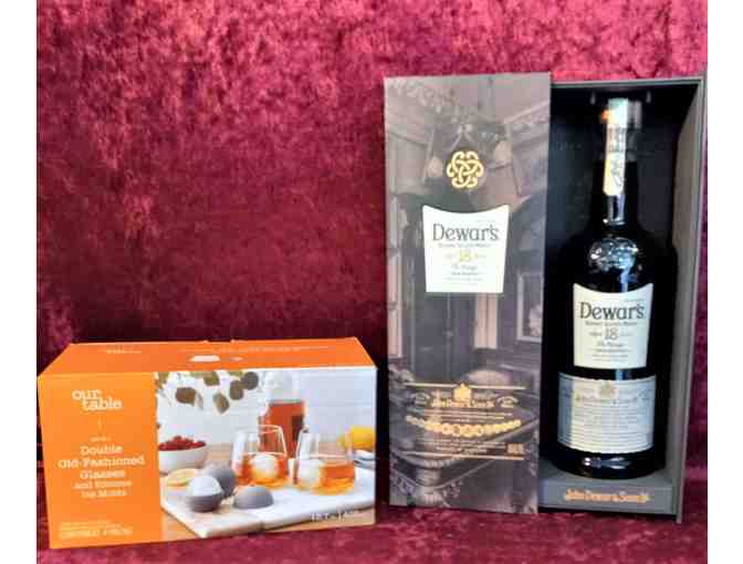 Enjoy this Dewar's 18-year-old scotch with 2 new Double Old Fashioned glasses.  Use the included silicone ice molds that are slower melting for that perfect drink.