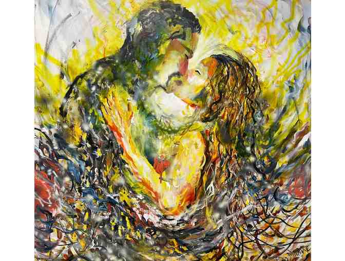 Eternal Kiss - Inspired by a kiss that created fire. Acrylic and spray paint on canvas.