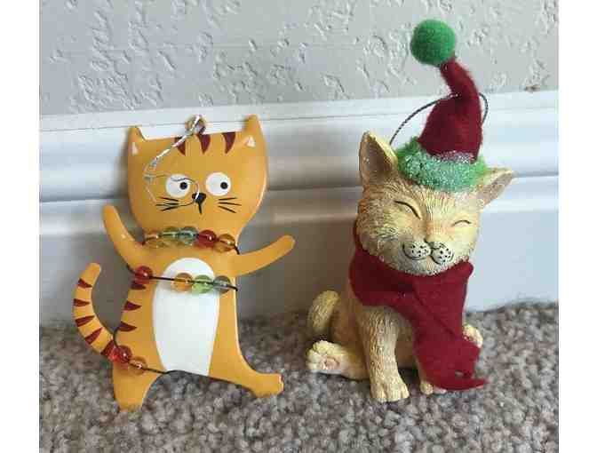 Cat in Christmas Hat: made of ceramic or resin with felt hat and scarf