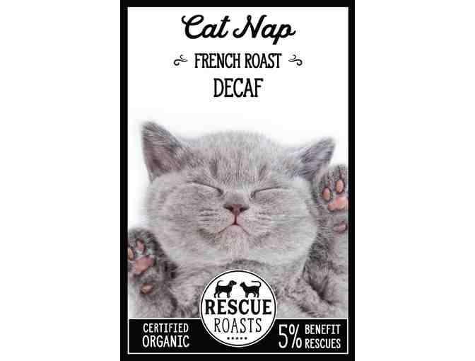 Cat Nap Decaf is one of Muddy Water's Rescue Roast Coffees: 5% of the proceeds from Rescue Roast Coffees are donated to their animal rescue partners. From Muddy Water's Rescue Roast website "TURN YOUR DAILY RITUAL INTO AN ACT OF KINDNESS. When you buy our delicious, sustainable & fair trade roasts a portion of your money is used to rescue an animal in need. Each bag supports a different animal organization. The mission of this coffee line is to help animals that have been abandoned, surrendered, abused or neglected."