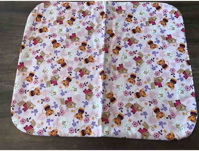 These reversable cat mats are just the thing for your kitties to lounge on or to place under their food and water bowls to avoid making a mess. Good quality fabric. Could also be used as a kennel liner for either cat or dog.