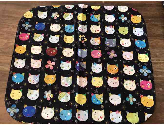 These reversable cat mats are just the thing for your kitties to lounge on or to place under their food and water bowls to avoid making a mess. Good quality fabric. Could also be used as a kennel liner for either cat or dog.