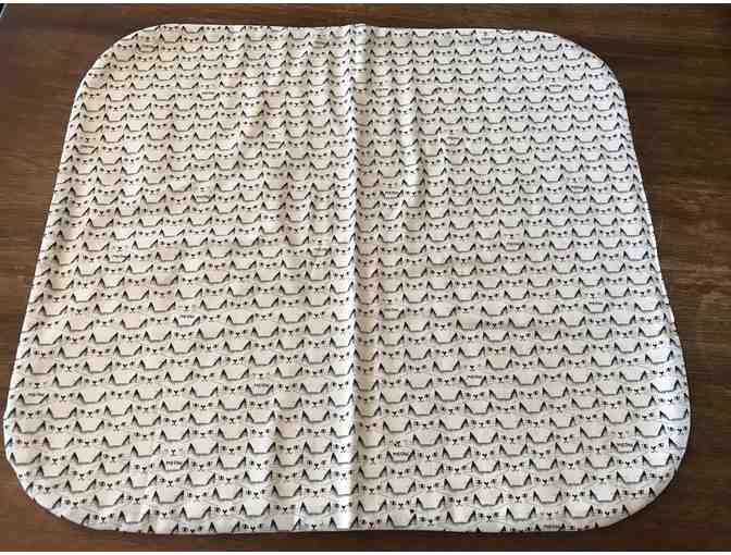 These reversable cat mats are just the thing for your kitties to lounge on or to place under their food and water bowls to avoid making a mess. Good quality fabric. Could also be used as a kennel liner for either cat or dog.