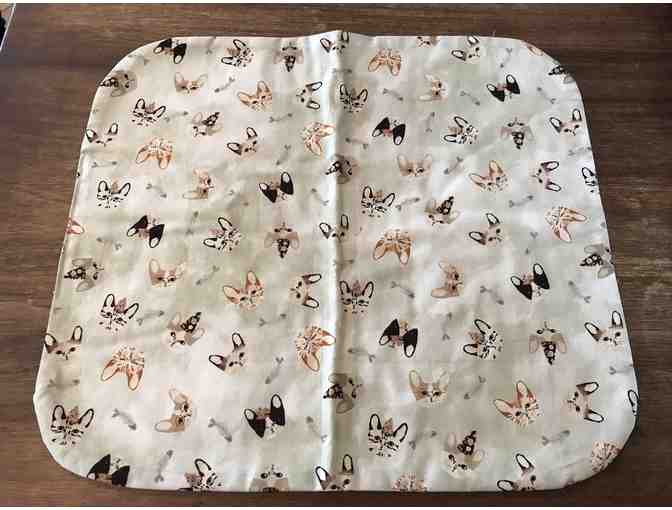 These reversable cat mats are just the thing for your kitties to lounge on or to place under their food and water bowls to avoid making a mess. Good quality fabric. Could also be used as a kennel liner for either cat or dog.