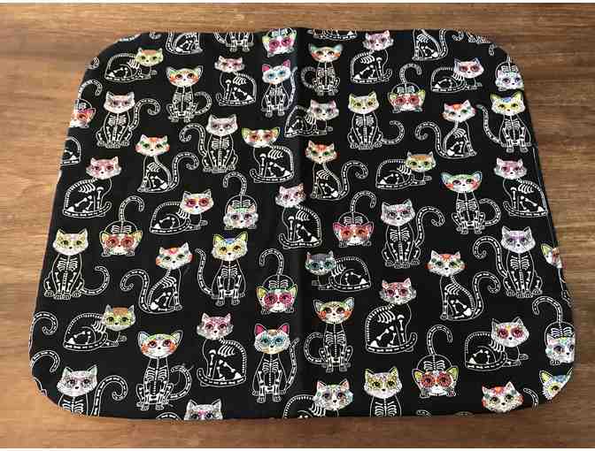 These reversable cat mats are just the thing for your kitties to lounge on or to place under their food and water bowls to avoid making a mess. Good quality fabric. Could also be used as a kennel liner for either cat or dog.