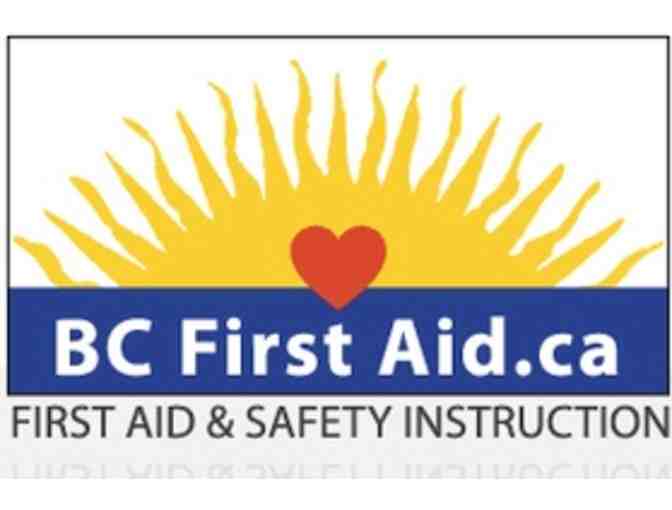 BC First Aid is pleased to offer a gift certificate for Emergency First Aid Training including CPR and AED training. Please call to discuss and confirm date/time at least one week in advances. 604-741-5009. 16 years of age or older only. BC First Aid provides first aid and CPR training for individuals and groups. Practical hands-on training delivered by compassionate certified instructors. www.bcfirstaid.ca