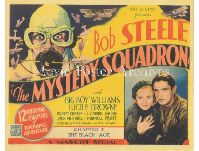 The Mystery Squadron, the 1933 Colbert Clark and David Howard aviation action series consisting of 12 chapters starring Bob Steel, Guinn Big Boy Williams, Lucile Brown, Jack Mulhall, Purnell Pratt, Robert Frazer, J. Carrol Naish, Bob Kortman, Lafe McKee and Edward Hearn.