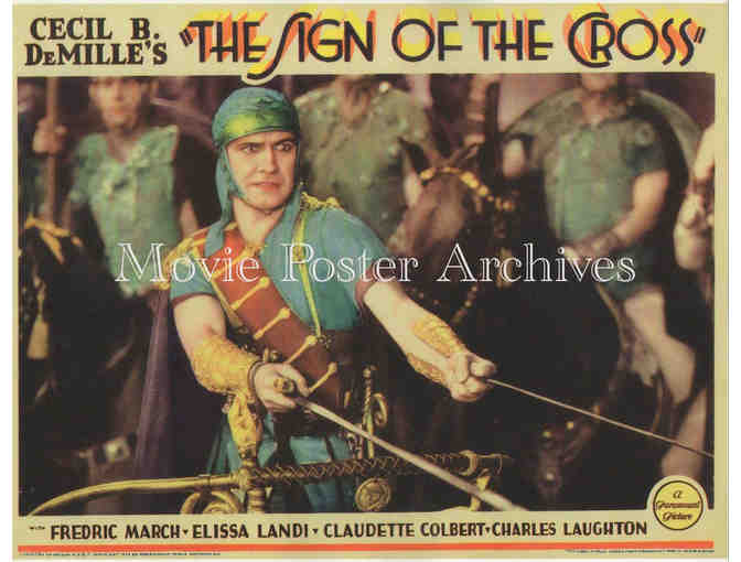 The Sign of the Cross, the classic 1932 Cecil B. DeMille religious epic starring Fredric March, Elissa Landi, Claudette Colbert, Charles Laughton, Ian Keith, Arthur Hohl, Harry Beresford, Tommy Conlon, Vivian Tobin and Richard Alexander.