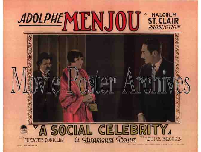 SOCIAL CELEBRITY, 1926, REPRO lobby card, Louise Brooks, Adolphe Menjou, Chester Conklin