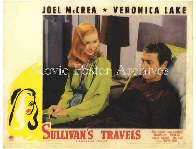Sullivans Travels, the classic 1941 Preston Sturges comedy starring Joel McCrea, Veronica Lake, Robert Warwick, William Demarest, Franklin Pangborn, Porter Hall, Byron Foulger, Margaret Hayes, Robert Greig and Eric Blore.