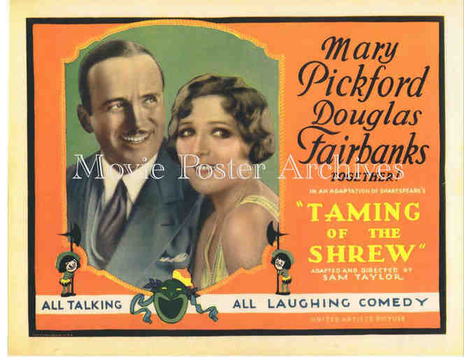 The Taming of the Shrew, the 1929 Sam Taylor romantic comedy drama starring Mary Pickford, Douglas Fairbanks, Edwin Maxwell, Joseph Cawthorn, Clyde Cook, Geoffrey Wardwell and Dorothy Jordan.