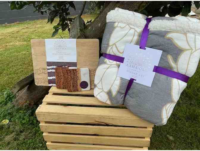 - One (1) grey fleece and sherpa blanket - 50"x60", 100% polyester