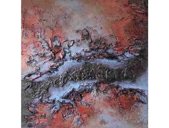 Impression, an original painting by Laya Joseph, was inspired by the idea of a mark or impression produced by the influence of a feeling or sense. A stamp or imprint left behind like a memory from the past. This original work is acrylic, mixed media on canvas, 20" x 20".