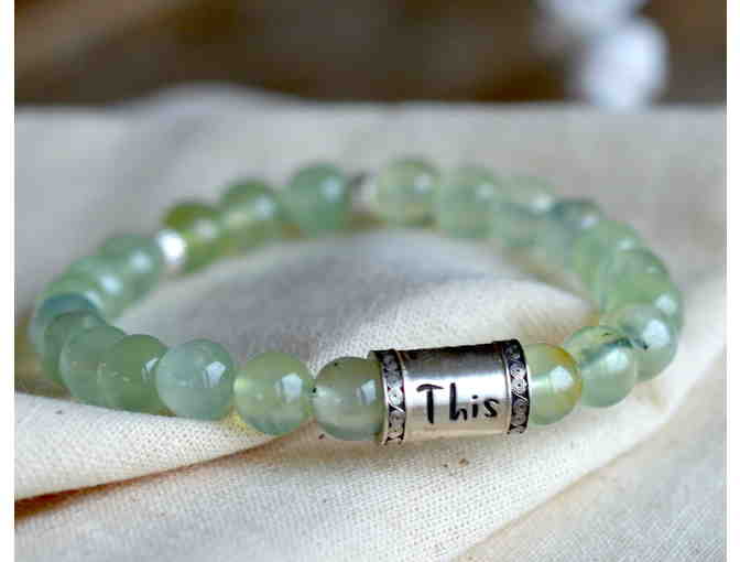 Mindful Necessities: Silver "this too shall pass" Prehnite Wrist Mala