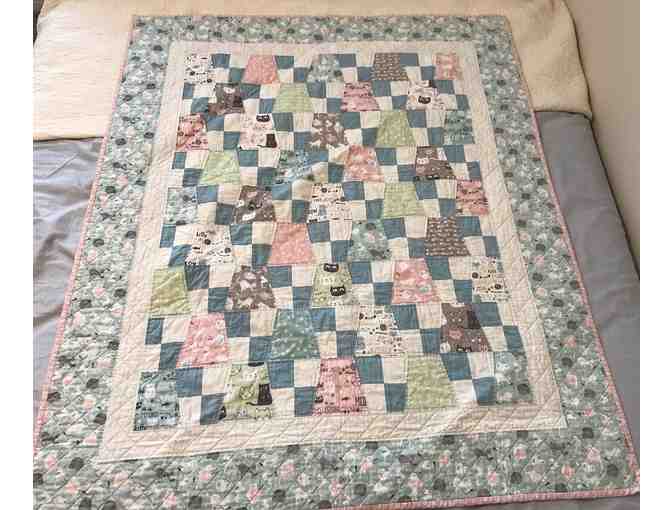 Pink & Blue with Cats Lap/Kids Quilt 52 x 42