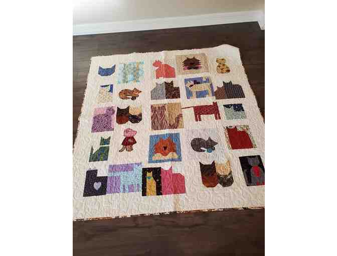 Inspired by our work, Teresa a friend of Nancy Johnson who works at Over The Top Quilting, donated this sweet cat quilt for our cause. Teresa put so much work into this with so many techniques. Her skill level is evident.