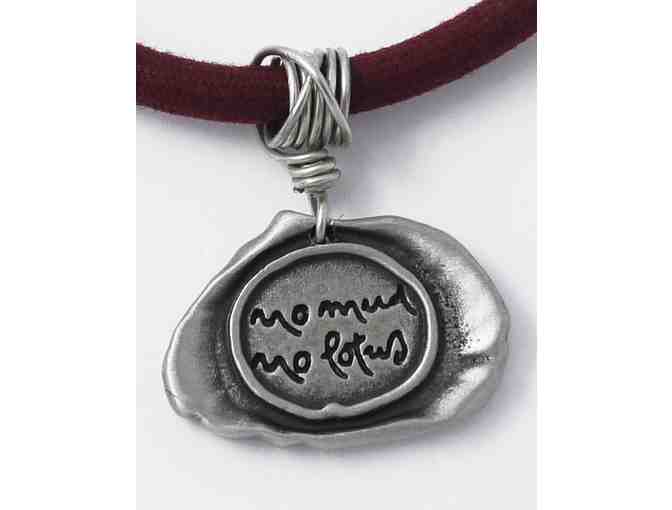 "No mud, no lotus" reads the engraving on the front of the pewter seal on this bracelet created by Mindful Necessities. The author is Thich Nhat Hanh.