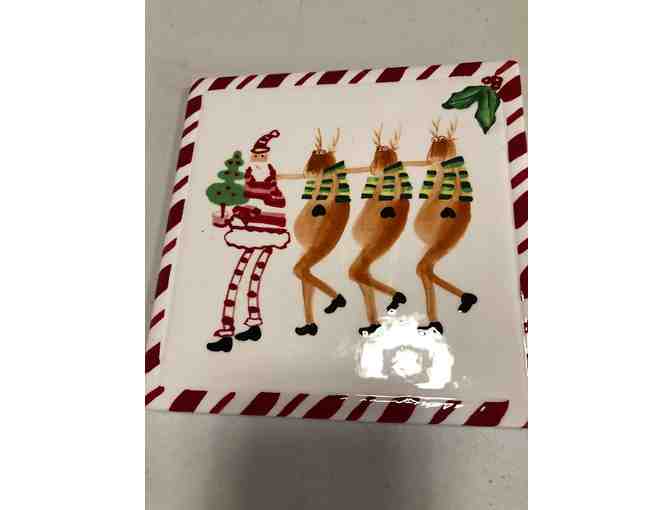 Cute Santa Clause and Reindeer trivet to liven up your holiday table.