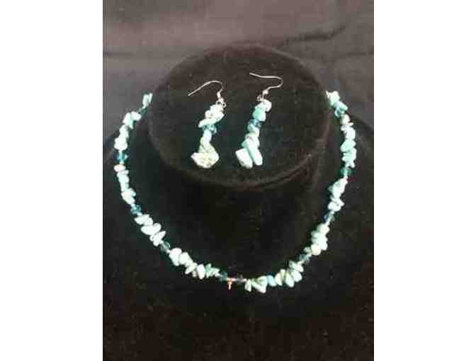 Turn heads when you step out in style with this hip and lovely turquoise set including necklace, and earrrings and a bracelet from - style name "Boho Chic." Fabulous!