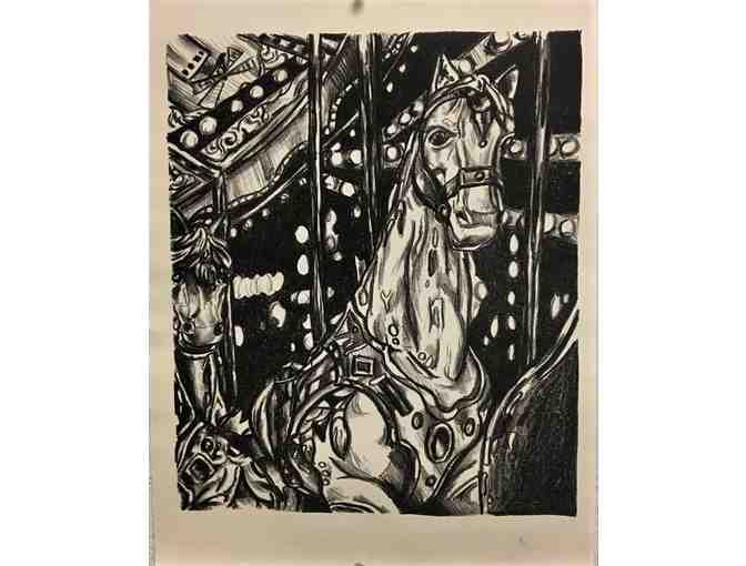 Run like Hell is a 11" x 14" framed edition (#2 of 3), original lithograph print on paper, from artist, Taylor Bielecki.