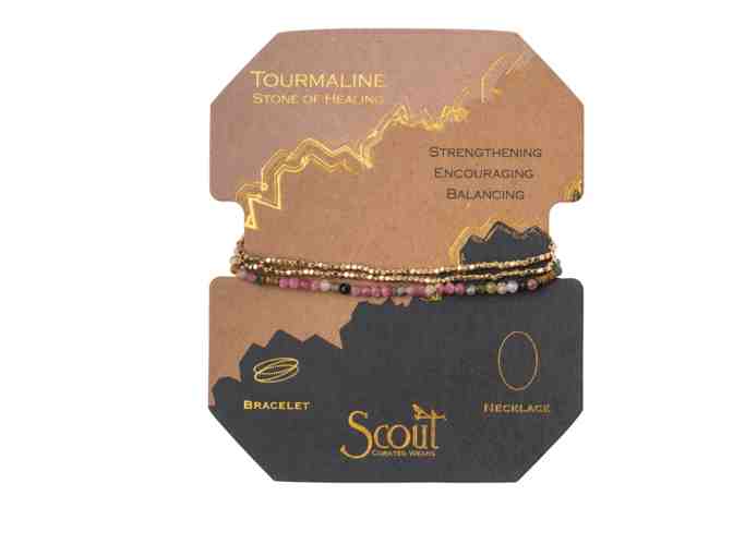 This beautiful piece can be worn as a necklace or a bracelet and was designed and created by Scout Curated Wears out of Massachusetts.