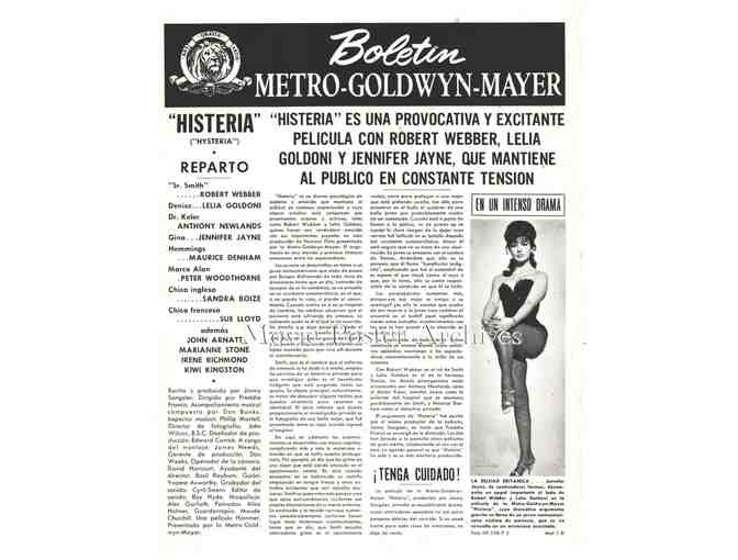 HYSTERIA, 1965, pressbook, Robert Webber, Jennifer Jayne, Maurice Denham