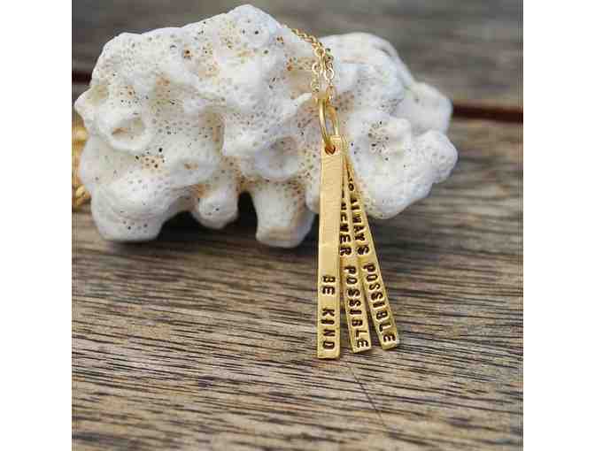 The necklace is handcrafted and the quote is hand-stamped in small letters.