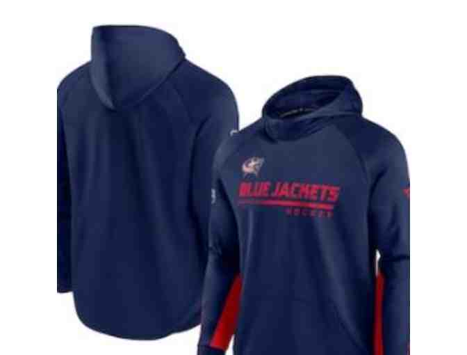 Fanatics Branded CBJ Navy Authentic Pro Locker Room Raglan Pullover Hoodie.