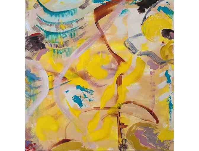 Bid for Symphony in Yellow, an original abstract painting of acrylic on canvas (varnished) from artist Meera Agarwal. Size 20" x 20" x 1.5".