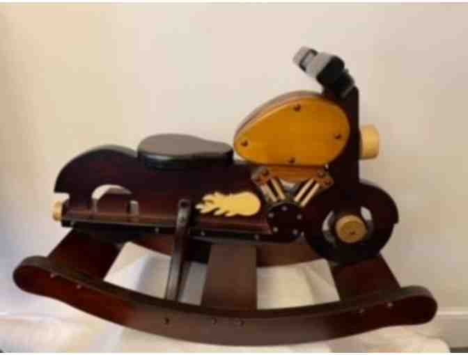 Vroom! Vroom! The Amish handcrafted Kids Motorcycle Rocker is the perfect "ride" for your little boy or girl. Who said its too early to have a Harley-Davidson motorcycle? This Amish wooden motorcycle rocker is an American classic just like the Harley. The two wood construction gives it a beautiful two-tone look. Let their imagination thrive as they envision themselves driving through the hills and valleys, exploring all this world has to offer. Made from solid wood from talented Amish craftsman to ensure superior quality, this kid's rocker is sure to be passed down through the generations.