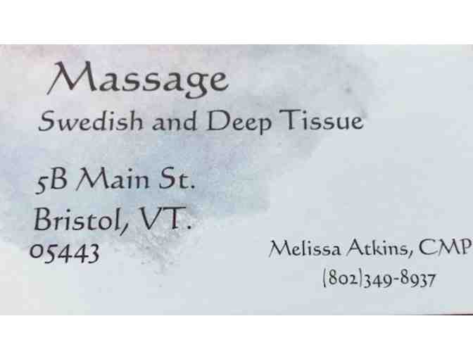 1 hour Swedish or Deep Tissue massage with Melissa Atkins in Bristol, VT