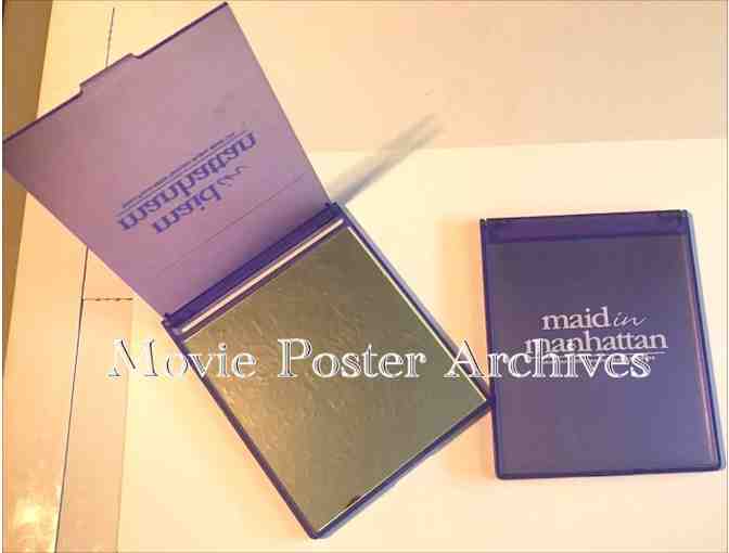 DESCRIPTION: This is a compact mirror with that was used as a premiere promo for Maid in Manhattan with the title on the front of the mirror. The compact measures 3.75 x 4.5 and opens to 3.75 x 9.