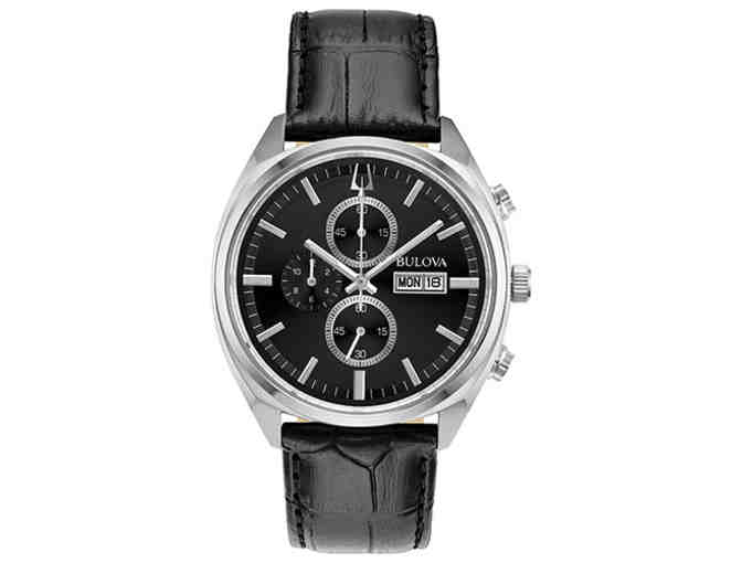 Bulova Chronograph Black Dial Men's Quartz Watch With Leather Band