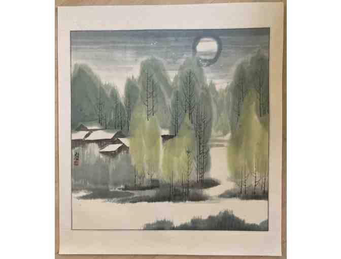 This superb geniune Chinese watercolour (No 169) is titled "Moonlight on Rooftops" is produced on textured paper and is unframed. It is one of a trio of paintings offered in this auction by Suken Tai who brought them to the west.