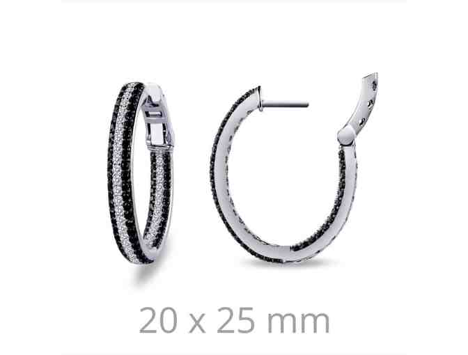 Fun and elegant, these mixed-color, inside-out hoop earrings are set with Lafonn's signature Lassaire clear and black simulated diamonds in sterling silver bonded with platinum.
