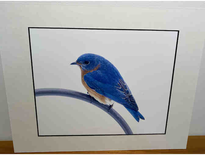 Large Photo of an Eastern Bluebird Mounted in White Mat with Black Core