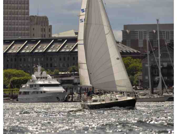 In the summer of 2022, Captain Art Boyd will take 2 people for an afternoon sail in Boston Harbor on a sonar boat. A sonar boat is a 7-meter, one-design keelboat for three to five people. It is Bermuda-rigged, with a large mainsail and a 100% jib. Departure will be from the Boston Sailing Center at Lewis Wharf.