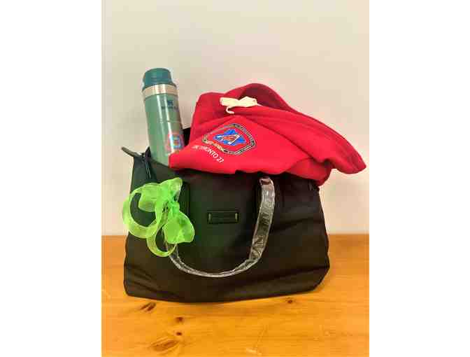 Get ready to work with this unique and warm red hoodie (size Large) and a sturdy green stainless steel bottle from Stanley branded by Carpenters & Allied Workers Local 27, all packaged in a Bugatti carrying case.