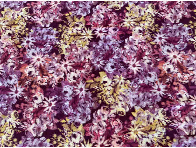 You will be able to stay cozy warm all winter long with this beautiful handmade Fleece Tie Blanket. There are two layers of very soft fleece fabric that have been tied together all around the edges of the blanket. The top layer is a beautiful floral print in shades of gold and lavender. The reverse side is a solid blue-gray color.
